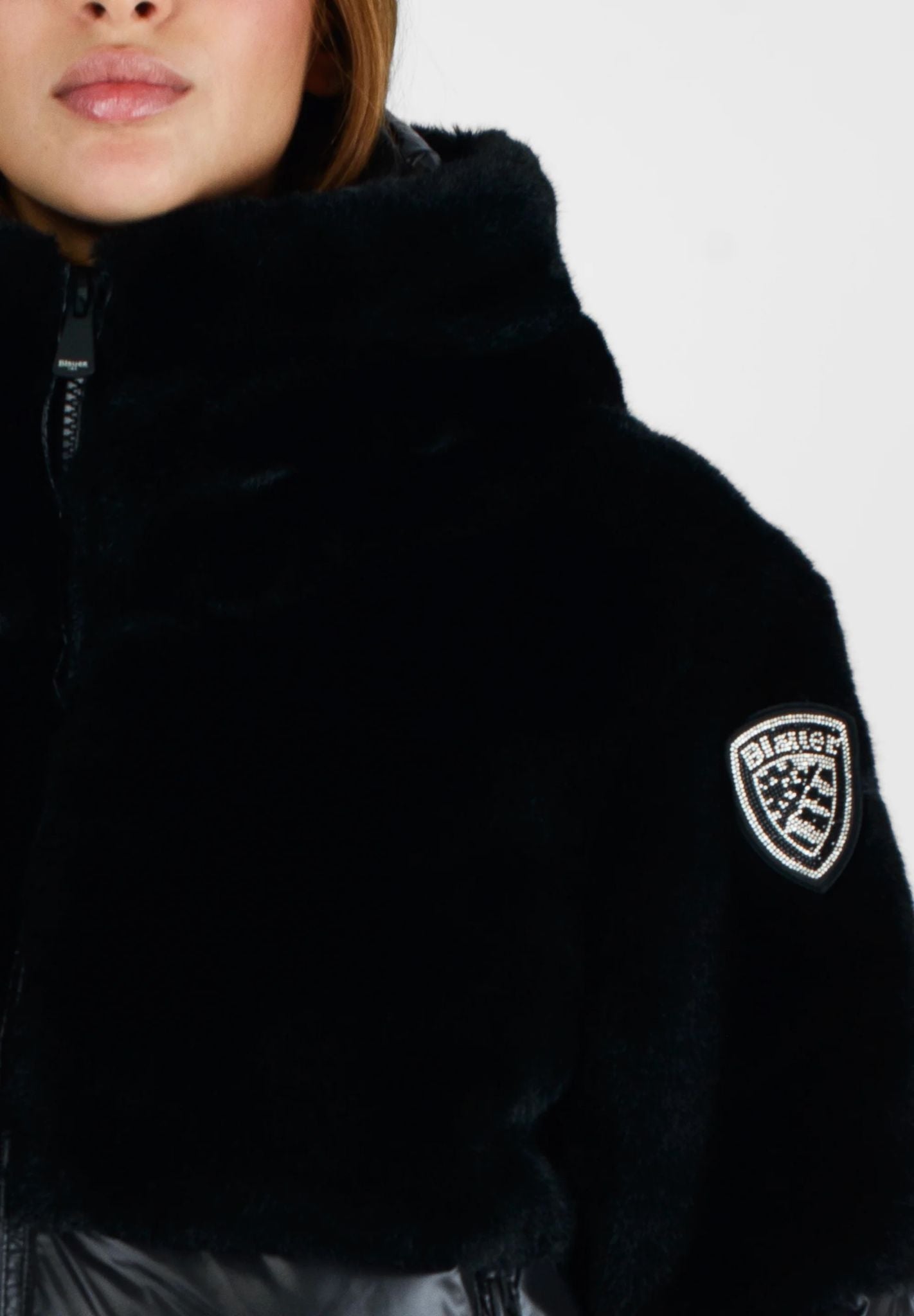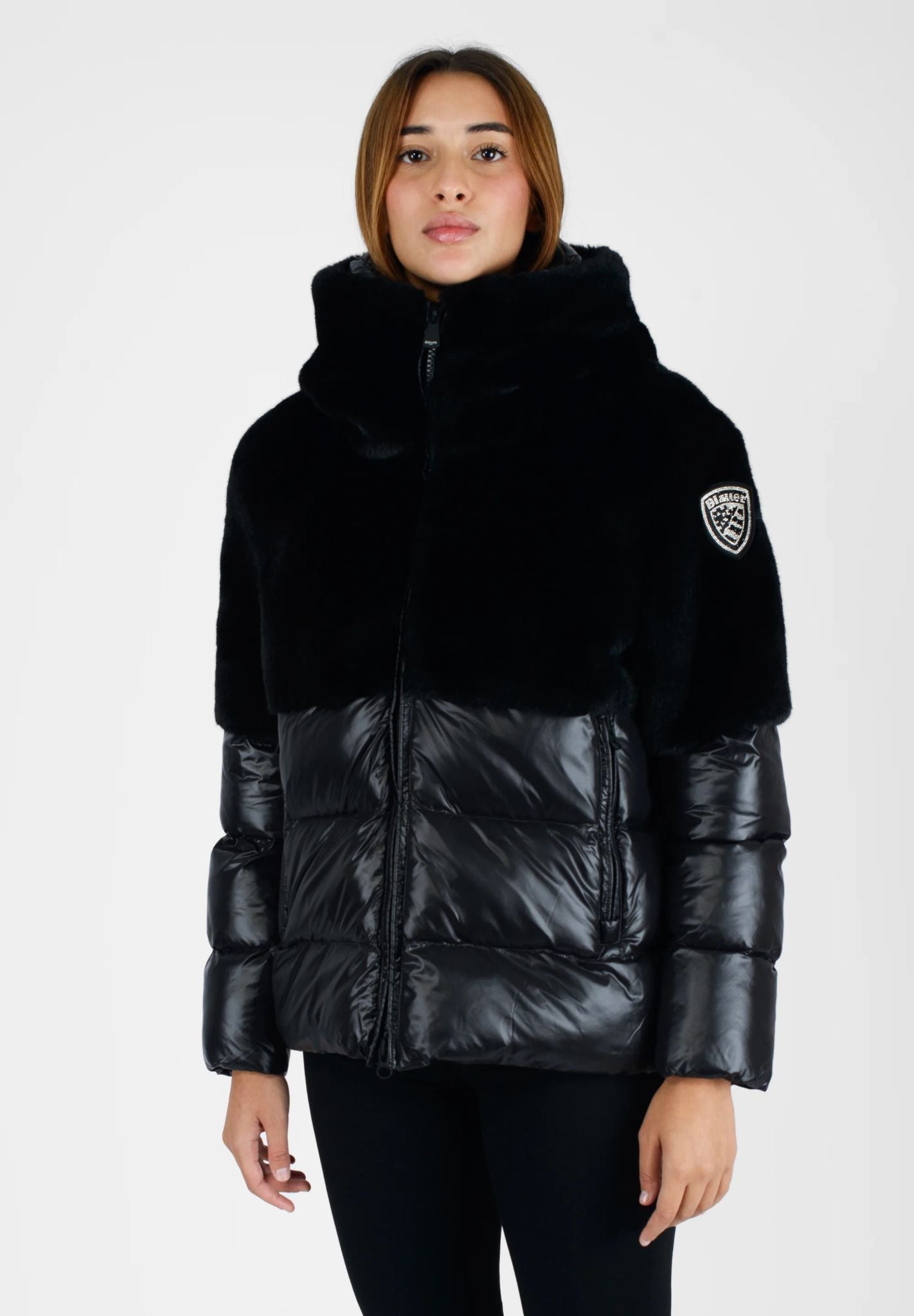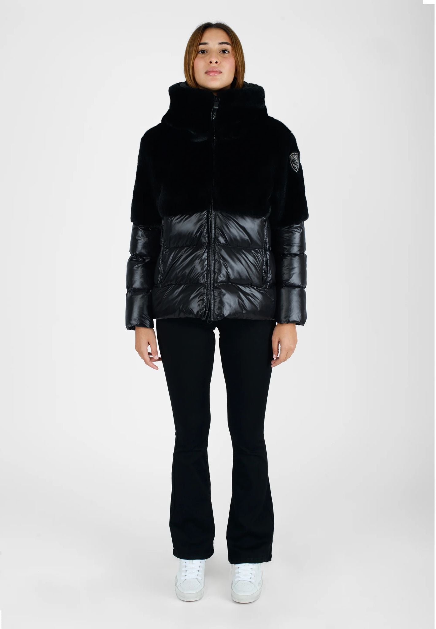 GIUBBINO BLAUER CORTO DONNA PELLICCIA E LUCIDO NERO